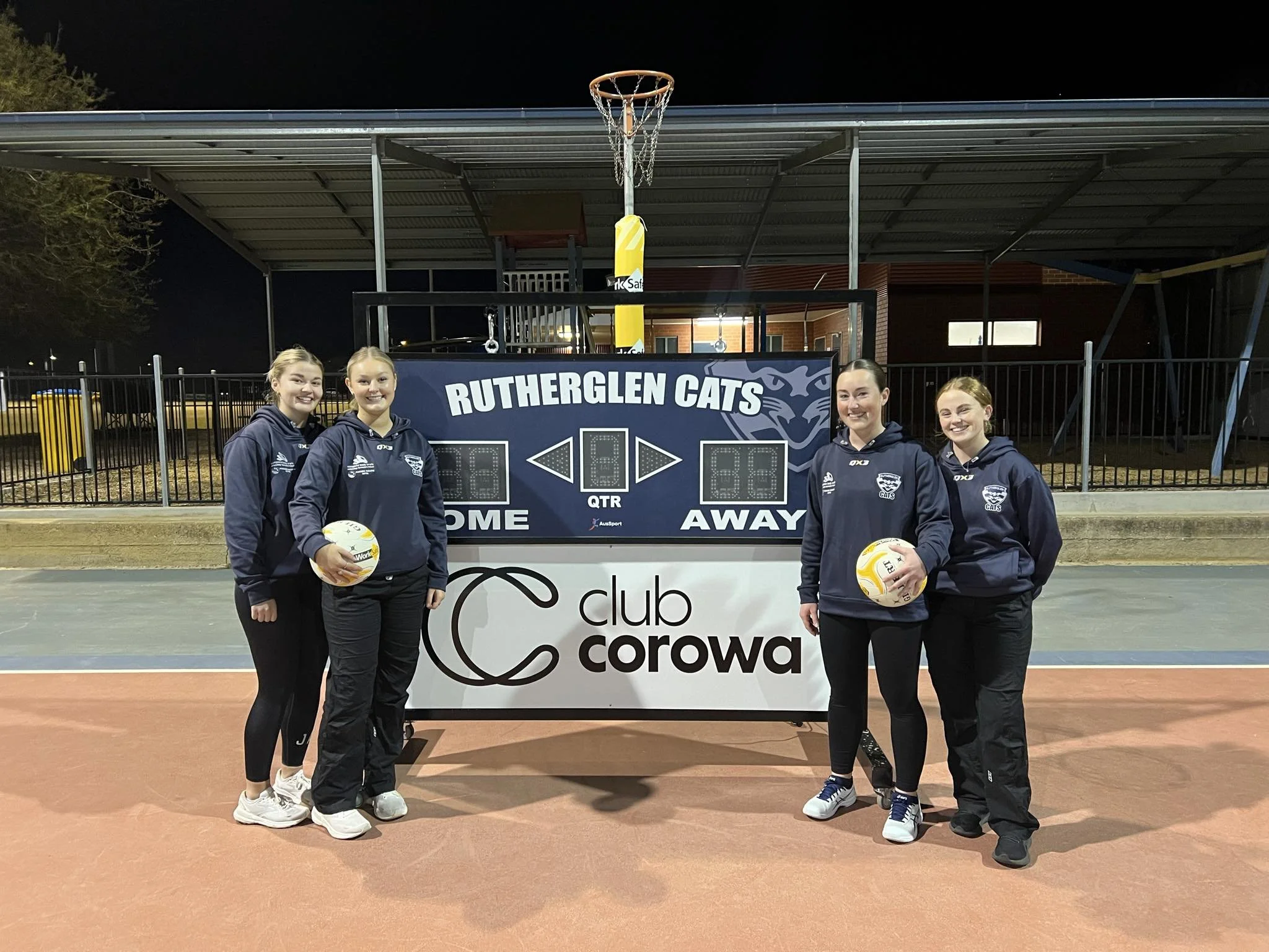 Club Corowa is pleased to have presented the Rutherglen Cats Football Netball Club with a $5,035 grant to replace the netballers old metal scoreboard with an electronic LED system.